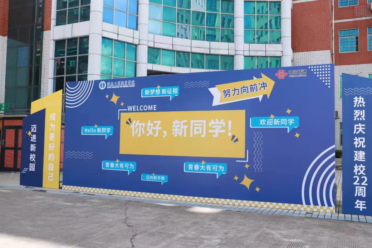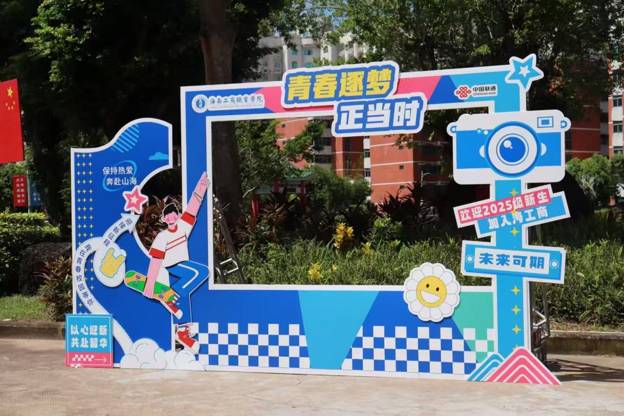 校园里还设置了多处充满青春活力的打卡点,有色彩鲜艳、印着“青春逐梦正当时”“你好,新同学!”等暖心话语的美陈装置,欢迎2025级萌新们前往拍照留念,定格初入校园的美好瞬间,在海工商开启属于自己的精彩青春篇章。