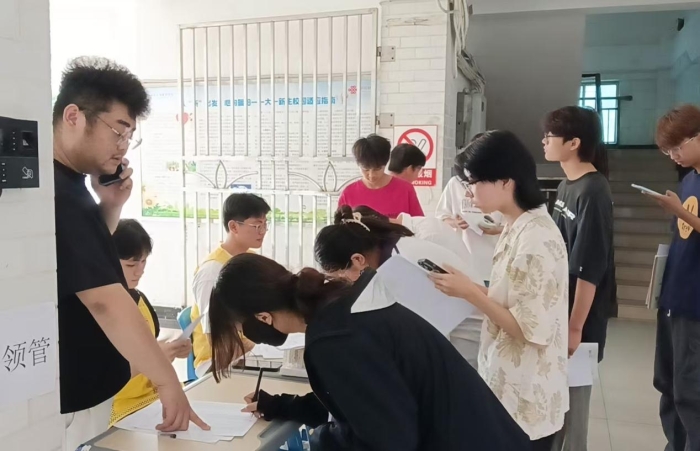 体检现场,人头攒动,但秩序井然。身着统一标识马甲的志愿者们各司其职,忙碌的身影穿梭于各个角落,耐心地为同学们指引科室方向,有效分流人群,极大地缩短了大家的等待时间,耐心细致,在视力、血压、抽血等热门检查项目前,秩序维护组的志愿者们不断进行温馨提醒,安抚同学们紧张的情绪。