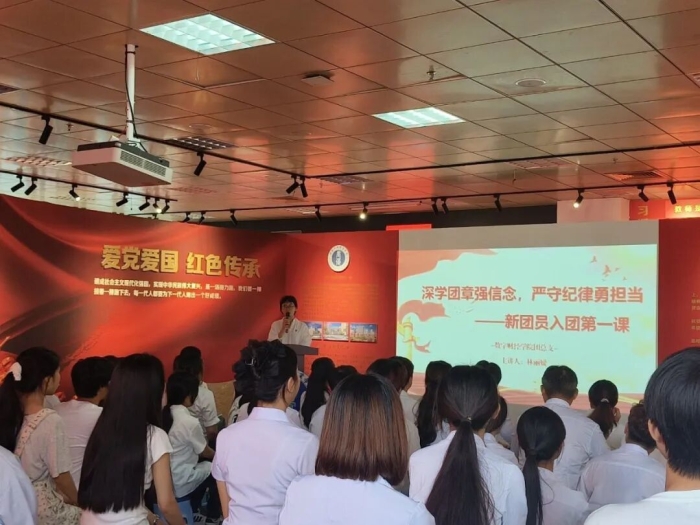 林书记为新团员讲授入团第一课,系统讲解了《中国共产主义青年团纪律处分条例(试行)》的修订历程、核心内容与重要意义。课程结合学生日常学习生活,重点剖析了政治纪律、组织纪律、社会公德及诚信等,并通过真实案例警示团员明晰行为边界。引导新团员将纪律要求内化为自觉行动,自觉履行团员义务,努力成为有理想、敢担当、能吃苦、肯奋斗的新时代青年。