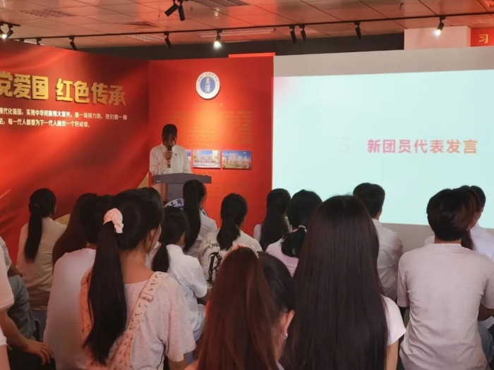宣誓结束后,老团员代表登台分享成长感悟,结合自身经历寄语新团员,鼓励大家以团员身份为新起点,牢记初心使命,以实际行动践行团员义务,在青春赛道上奋力奔跑。新团员代表随后表态,将以团章为根本遵循,在学习中锤炼本领,在实践中增长才干,不负时代、不负韶华,努力成为有理想、敢担当、能吃苦、肯奋斗的新时代青年