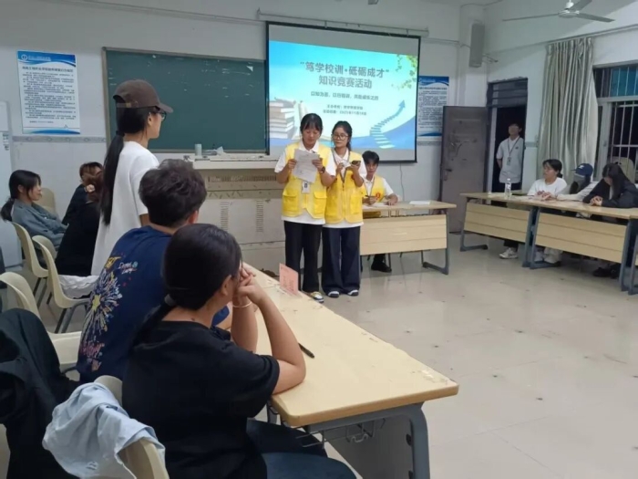 为深入贯彻落实三全育人的思想,将“笃学”之风内化于心、外化于行,数字财经学院于2025年11月18日在教一607举办了以“笃学校训·砥砺成才”为主题的知识竞赛活动,由班级团支部中选拔出了六组队伍共同参与这场知识与智慧的较量。