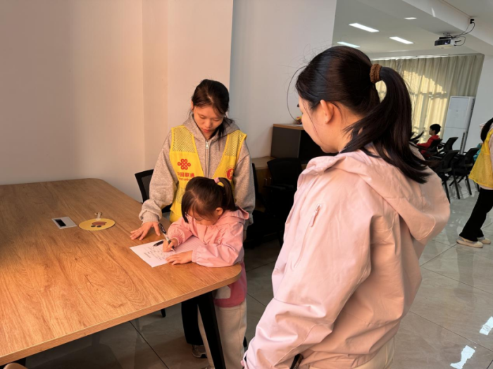 此次志愿服务活动,并未停留于简单的互动形式,而是将 “用心陪伴” 的理念深深融入与小朋友相处的每一分钟。没有刻意的说教,也没有生硬的引导,志愿者们只是像大朋友一样,蹲下来倾听孩子们天马行空的想法,陪他们一起为手工零件挑选颜色,在他们遇到困难时轻声加油,用平等的姿态和真诚的态度,一点点拉近与孩子们的距离。