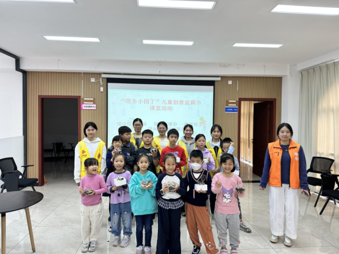 为深入推进“三全育人”综合改革,将立德树人根本任务融入社会实践全过程,2025年11月22日,数字财经学院青年志愿者协会联合文坛社区党群服务中心,在二楼活动空间开展“暖冬小园丁”儿童创意盆栽小课堂活动。活动以“赋能儿童成长、锤炼志愿担当”为双重目标,通过沉浸式体验与协同协作的方式,既为幼儿园小朋友搭建了亲近自然、施展创意的平台,更让青年志愿者在实践中深化服务意识,构建起校社协同的育人新格局。