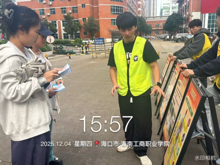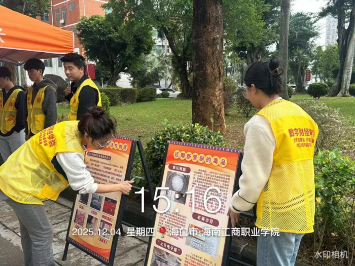 为深入贯彻宪法精神,增强青年学生法治意识和禁毒意识,12月4日下午,2025级数字财经学院现代物流管理2班团支部联合国兴街道禁毒办,在校园内开展“弘扬宪法精神 护航无毒人生”暨“12·4”宪法宣传日活动禁毒志愿服务活动。本次活动以“互动体验+仿真展示+普法宣传”的形式,引导广大师生识毒、防毒、拒毒,积极营造无毒校园氛围。