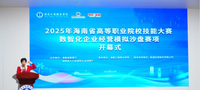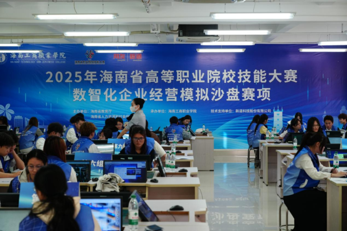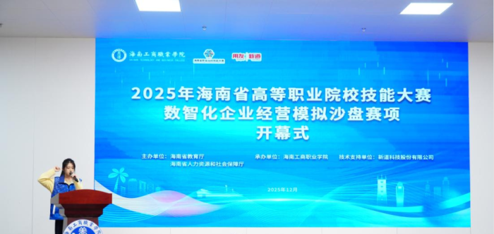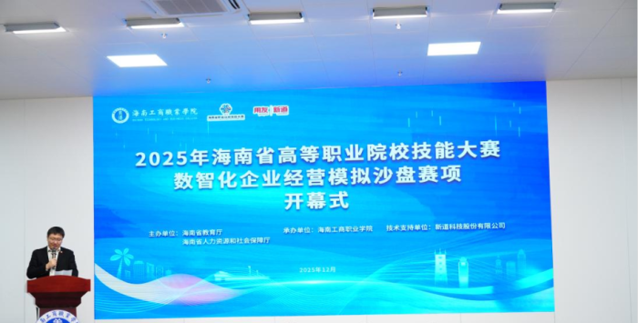 12月12日,2025年海南省高等职业院校技能大赛数智化企业经营模拟沙盘赛项圆满落幕。该赛项由海南省教育厅、海南省人力资源和社会保障厅主办,海南工商职业学院承办、新道科技股份有限公司提供技术支持。来自全省8所高职院校的15支队伍、60名选手齐聚我校,在模拟商战的激烈博弈中比拼专业实力,尽显海南高职学子的青春风采与专业素养。