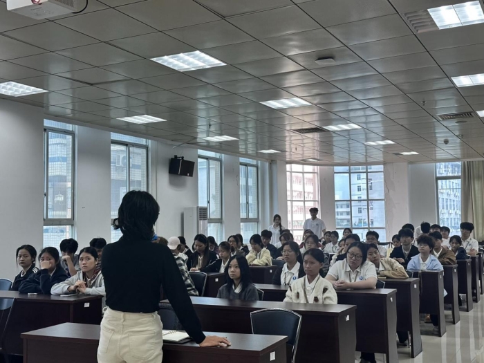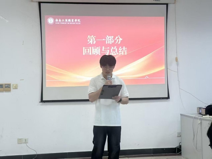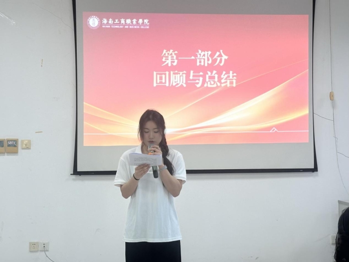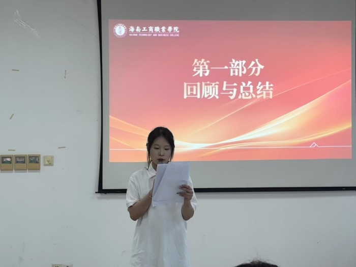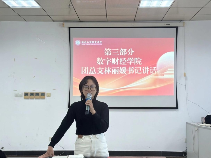 团总支书记林丽媛发言总结,对受表彰的同学表示热烈祝贺,肯定了全体成员在过去一段时间的辛勤付出。