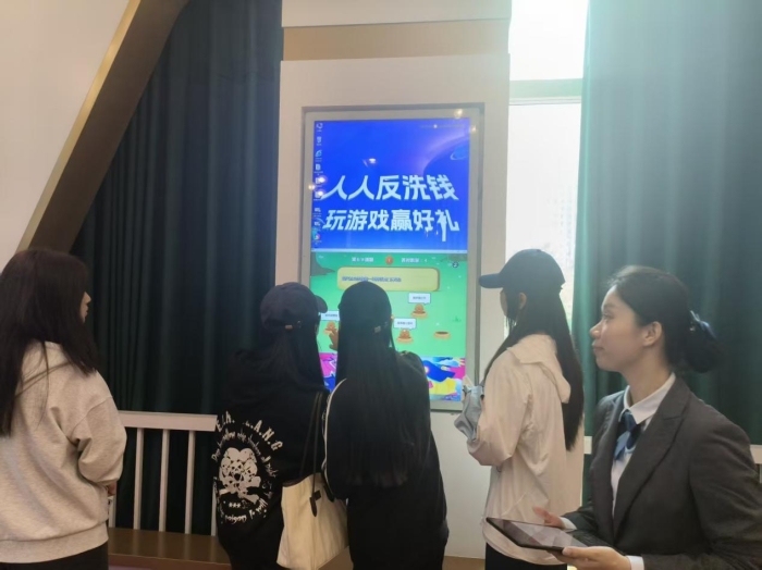 活动过程中同学们通过电子互动屏幕反诈小游戏、图书角阅读、VR体验等多种形式加深了对反诈反洗钱等知识的理解。