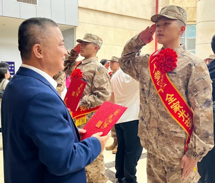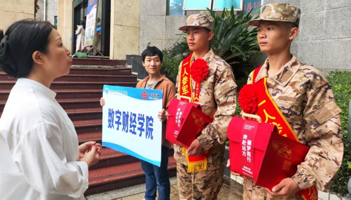 仪式后,数字财经学院党支部书记史克华为2名入伍学子送上紧扣“数字铸魂 财经报国”主题的定制纪念礼包与殷切嘱托,从思想引领、生活关怀等多方面提供全方位保障。两名入伍学子郑重表态,定不负母校与学院的培育嘱托,在军营刻苦训练、奋勇争先,以实际行动践行强军报国誓言。