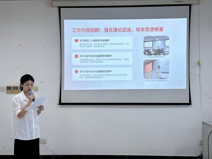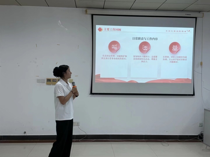在团支部工作成果展示环节,各班支部负责人围绕思想引领、组织建设、志愿服务、学风建设、文体活动等方面,全面梳理支部工作亮点与成长历程,展示了支部在理论学习、集体活动、服务同学、践行社会责任中取得的优异成绩,彰显了基层团支部蓬勃向上的组织活力。
